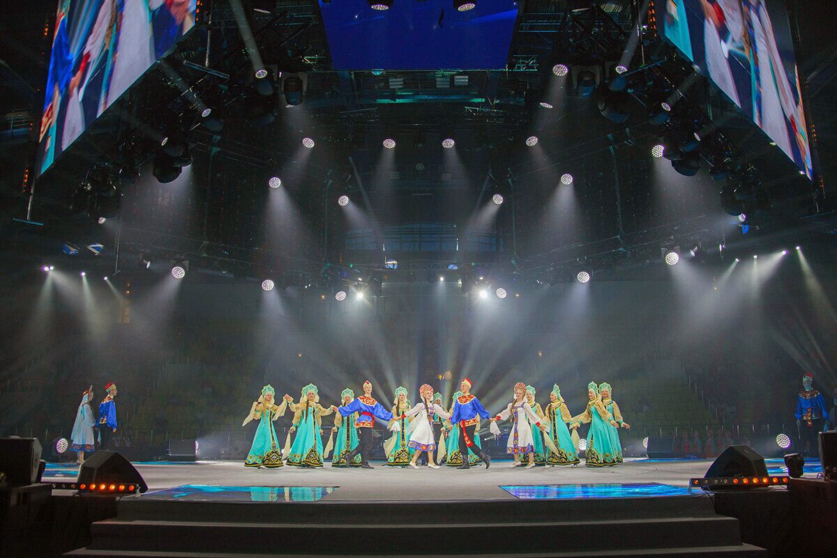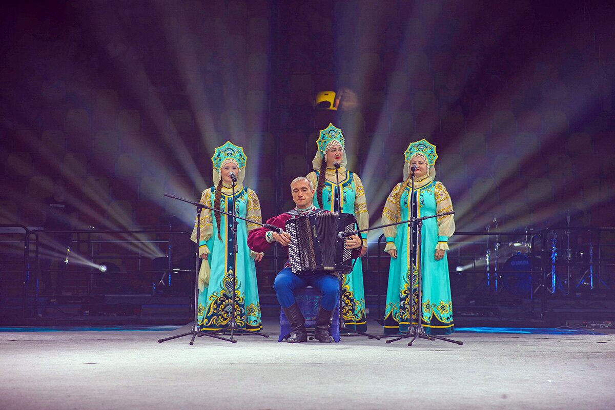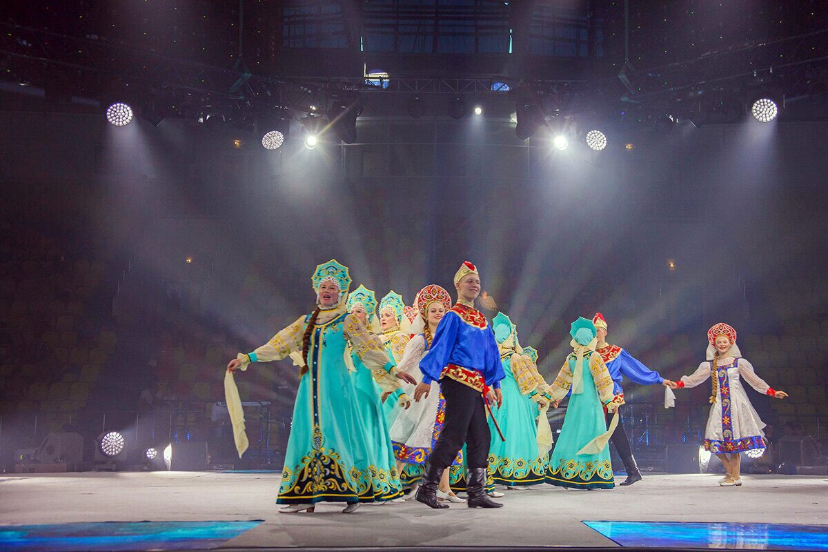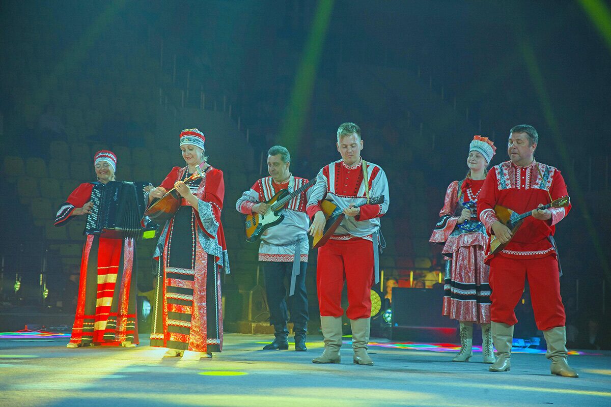 Торжественно подняли флаг фестиваля, и начался гала-концерт «Творчество объединяет друзей». Ведущие знакомили с легендами о Бобруйске и с коллективами, а на сцене перед зрителями предстали завораживающе красивые выступления, богатая программа танцевальных и вокальных номеров, виртуозное исполнение на национальных музыкальных инструментах.