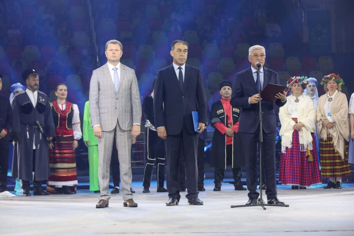 К участникам и зрителям фестиваля обратился заместитель председателя Могилевского облисполкома Валерий Малашко. Он зачитал приветственный адрес от председателя областного исполнительного комитета Анатолия Исаченко. «Благодаря духу единения и взаимопонимания за время существования фестиваль объединил множество творческих коллективов и участников из разных стран мира. За свою историю он не только расширил географию, но и показал, что народное творчество не имеет границ. В период проведения фестиваля в Бобруйске будет царить праздничная атмосфера, наполненная теплом, радушием, искренностью и национальным колоритом», – сказано в приветствии.