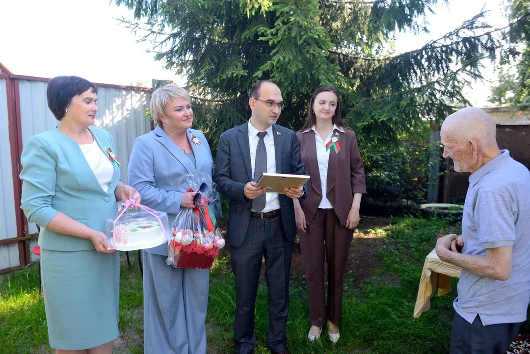 Поздравления получили Михаил Тимофеевич Волчек, Борис Николаевич Музалевский, Ольга Кузьминична Головкина и Ераст Андреевич Иванов, который проживает в деревне Лекерта Бобруйского района. Представители депутатского корпуса зачитали каждому поздравление Председателя Палаты представителей Национального собрания Игоря Сергеенко.