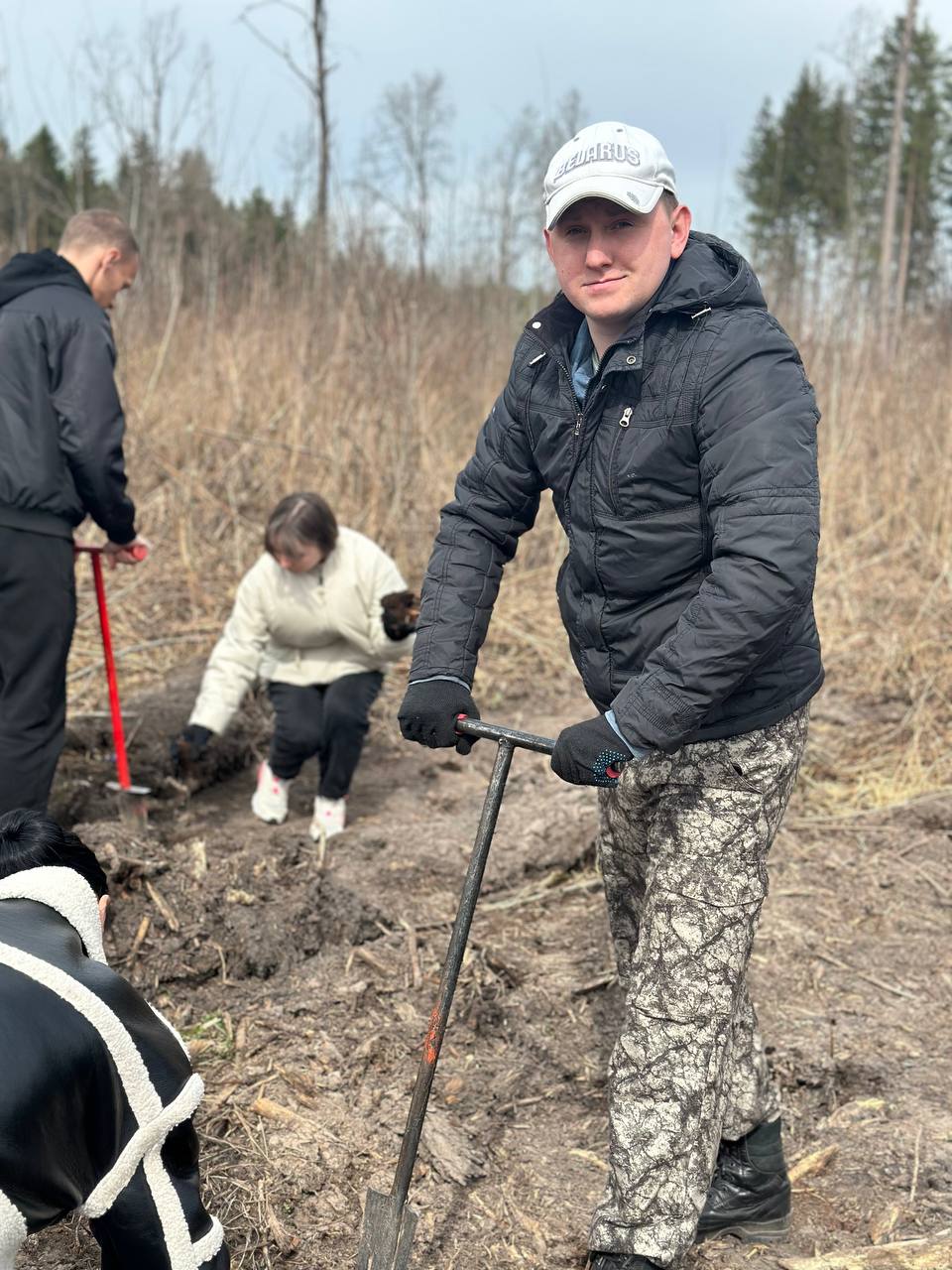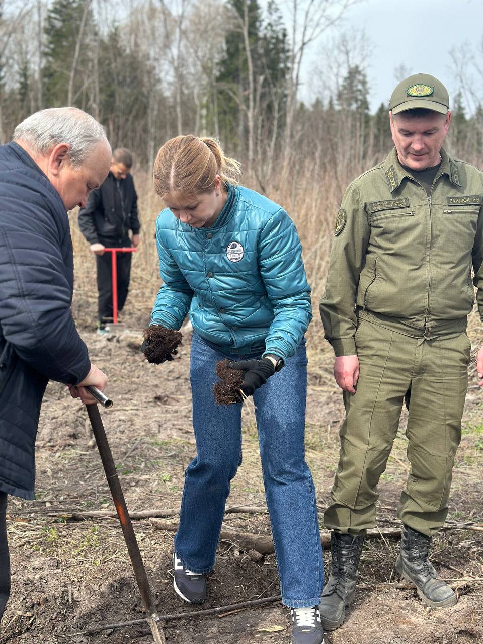 В дружном порыве охрановцы покорили территорию, выделенную под посадку молодого леса. Здесь под теплым весеннем солнцем ожили молодые саженцы будущего леса.